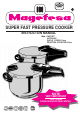 2) ADVANTAGES OF MAGEFESA SUPER RAPID PRESSURE COOKER 3) HOW TO USE THE PRESSURE COOKER – Never leave the pressure cooker unattended. Always pay attention to the steam coming out of the "Counterweight". – The pressure cooker must have water inside, in order to obtain pressure. It cannot be used with oil alone. – Never make any modifications to the safety systems, nor use any imitation “Sealing gaskets”, or any non-original MAGEFESA spare parts.