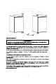 10 90°F (32.2°C) Door Reversal Instruction Remove the top hinge cover. Using Phillips Head Screwdriver, loosen and remove the screws holding the top hinge in place. Remove top hinge and carefully lift off the door. Remove the screw hole plugs from the opposite side and insert the plugs in the screw hole openings of the just removed screws. • Remove any loose items in the refrigerator and carefully turn refrigerator on its back and place in a secure area.