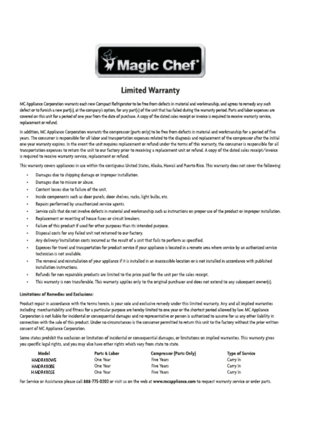 Magic Chef Manuals
