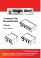 Commercial Gas Manual Griddle E-Series User's Manual Model: M16MG, M24MG, M36MG, M48MG, M60MG M16TG, M24TG, M36TG, M48TG, M60TG PLEASE READ THIS MANUAL CAREFULLY BEFORE USING YOUR COMMERCIAL THERMO/MANUAL GRIDDLE AND KEEP IT FOR FUTURE REFERENCE.