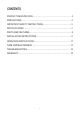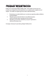CONTENTS PRODUCT REGISTRATION...................................................................... 2 PRECAUTIONS......................................................................................... 4 IMPORTANT SAFETY INSTRUCTIONS................................................... 5 SPECIFICATIONS ......................................................................................7 PARTS AND FEATURES............................................................................