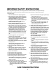 IMPORTANT SAFETY INSTRUCTIONS When using electrical appliances, basic safety precautions should be followed, including the following: WARNING-To reduce the risk of burns, electric shock, fire, injury to persons or exposure to excessive microwave energy: 11. Read all instructions before using the appliance. 12. Read and follow the specific “PRECAUTIONS TO AVOID POSSIBLE EXPOSURE TO EXCESSIVE MICROWAVE ENERGY” found on page 1. 13. This appliance must be grounded. Connect only to properly grounded outlet.