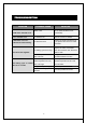 TROUBLESHOOTING PROBLEM POSSIBLE CAUSE SOLUTION Water is low. Fill the water storage tank with water, the ice maker will start to work automatically. “Ice” indicator is on. Ice basket is full. Remove ice from ice basket. “Add water” and “Ice” indicator are both blinking. Ice shovel is stuck. Check if ice shovel is blocked by ice. If yes, please take out the ice cubes and restart. “Add water” indicator is on. Stop the ice maker, and restart Ice cubes stick together.