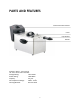 PARTS AND FEATURES Thermostat Control Knob Cover Fryer Basket Handle SPECIFICATIONS Voltage Rating: Power Rating: Capacity: Oil Temperature Range: Housing Material: 120 V 60 Hz 1500 Watts 3.