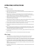 OPERATING INSTRUCTIONS Frying 1. Switch on the fryer. 2. Set the thermostat to the desired temperature setting. 3. Within 10 to 15 minutes, the oil or fat will be heated to the selected temperature and the indicator light will turn off. 4. While the fryer is heating, the indicator light will turn on and off several times. The indicator light remains lit as long as the heating element is heating. If the light does not switch on and stays off, the oil or fat has reached the set temperature. 5.