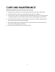 CARE AND MAINTENANCE CAUTION: Completely clean and dry all parts after every use. 1. Unplug the oven and allow it to cool completely before any cleaning or maintenance. 2. Never allow water to spill on the tempered glass door when it is still warm. 3. To clean interior walls, use a damp cloth and a mild liquid soap solution or a soapy solution on a sponge. Never use harsh abrasive products. These could damage the oven surface. 4. Do not use abrasive cleaners, as they could leave scratches on the body.