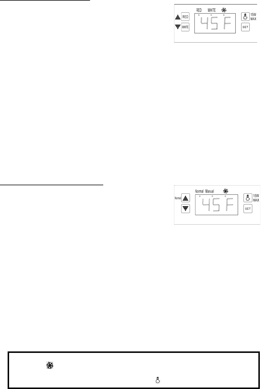 temperature setting of 45°F (7°C) and the “NORMAL” indicator light will be illuminated.