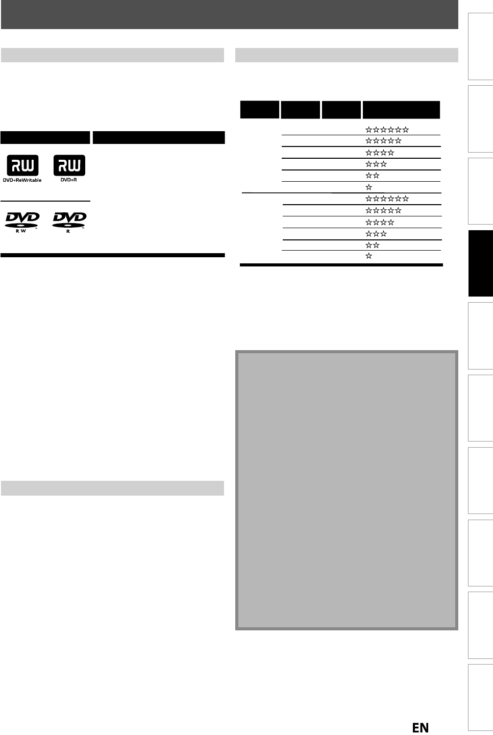 • DVD+RW/+R, DVD-RW/-R an