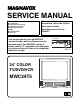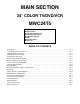 MAIN SECTION 24″ COLOR TV/DVD/VCR MWC24T5 Main Section I Specifications I Preparation for Servicing I Adjustment Procedures I Schematic Diagrams I CBA’s I Exploded Views I Parts List TABLE OF CONTENTS Specifications . . . . . . . . . . . . . . . . . . . . . . . . . . . . . . . . . . . . . . . . . . . . . . . . . . . . . . . . . . . . . . . . . . . . . . . . . . 1-1-1 Laser Beam Safety Precautions . . . . . . . . . . . . . . . . . . . . . . . . . . . . . . . . . . . . . . . . . . . . . . . . . . . . . . .