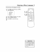 Selecting a Menu Language This function menu, not affects only the language the audio of TV programming Press MENU. Press PLAY/A select LANGUAGE. of the 9 TVIVCR's or videotapes. or STOP/V to -MENUTIMER PROGRAMMING PICTURE CONTROL SETTING CLOCK CHANNEL SET UP USER'S SET UP 1,- LANGUAGE _ I ZERO RETURN TIME SEARCH Press F.FWD/_ or REW/_I to select ENGLISH or ESPAI_IOL (Spanish). Press MENU to remove the menu.