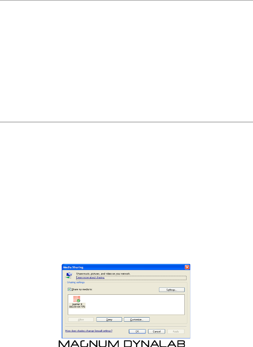 Alternatively, other UPnP platforms and servers may be used. To set up WMP for