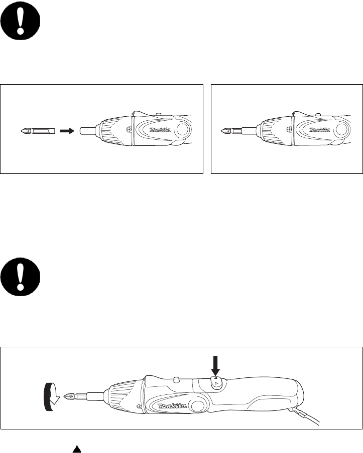 Do not press the On/Off switch when removing, or installing a screwdriver