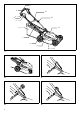 Model: Hvatač trave: Netto težina: Stupanj zaštite od tekućine: Prilagođavanje visine: ELM4610 60 L 29,0 kg IPX4 20-75 mm, 5 položaja ELM4611 60 L 32,1 kg IPX4 20-75 mm, 5 položaja Razlika između ELM4610 i ELM4611 je u tome što ELM4611 ima sustav samostalnog pogona, ELM4610 ga nema. 5. SKLAPANJE 5-1 SKLAPANJE PREKLOPNE RUČKE A) Pričvrstite donje upravljače na tijelo jedinice pomoću gumba za zaključavanje. (Sl. 2 - 5) B) Otpustite gornje upravljače kako bi ih preklopili.