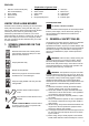 ITALIANO Spiegazione della vista generale 1. 2. 3. 4. Impugnatura di controllo semovenza (solo con il modello ELM4611) Impugnatura superiore Impugnatura di attivazione Scatola di comando 5. 6. 7. 8. 9. Pulsante di sicurezza Sacco di raccolta Gancio fermacavo Ruota Leva per la regolazione dell’altezza CONOSCERE IL RASAERBA Si prega di leggere attentamente il manuale, rispettando le istruzioni per la sicurezza consigliate durante e dopo l’uso del rasaerba.
