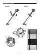 DESIGNATION OF PARTS EM3400U EM3400L 1 3 3 2 4 1 4 5 7 6 2 7 8 8 10 10 9 9 11 12 13 14 DESIGNATION OF PARTS 15 16 19 17 18 20 21 8 1 I-O sаitch (on/off) 2 Throttle lever 3 Control cable 4 Hanger 5 Rear grip 6 Handle holder 7 Handle 8 Shaft 9 Gear case 10 Protector (Cutting tool guard) 11 Spark plug 12 Air cleaner 13 Starter knob 14 Clutch case 15 Primer pump 16 Fuel tank 17 Eбhaust mufler 18 Eбhaust pipe 19 Choke lever 20 Fuel tank cap 21 R