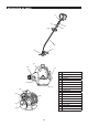 NAMEN VAN ONDERDELEN (1) (4) (2) (5) (3) (6) (7) (8) (9) (10) (11) Naam van onderdeel (12) (13) (14) (15) (16) (17) (18) 68 1 Gaskabel 2 Achterhandgreep 3 Gashendel 4 Start-stopschakelaar 5 Handgreep 6 Schacht 7 Beschermkap van snijgarnituur 8 Nylondraad-snijkop 9 Luchtfilterkap 10 Koppelingshuis 11 Brandstofvuldop 12 Brandstofhandpomp 13 Brandstoftank 14 Bougie 15 Chokehendel 16 Uitlaatdemper 17 Trekstarthandgreep 18 Trekstartinrichting