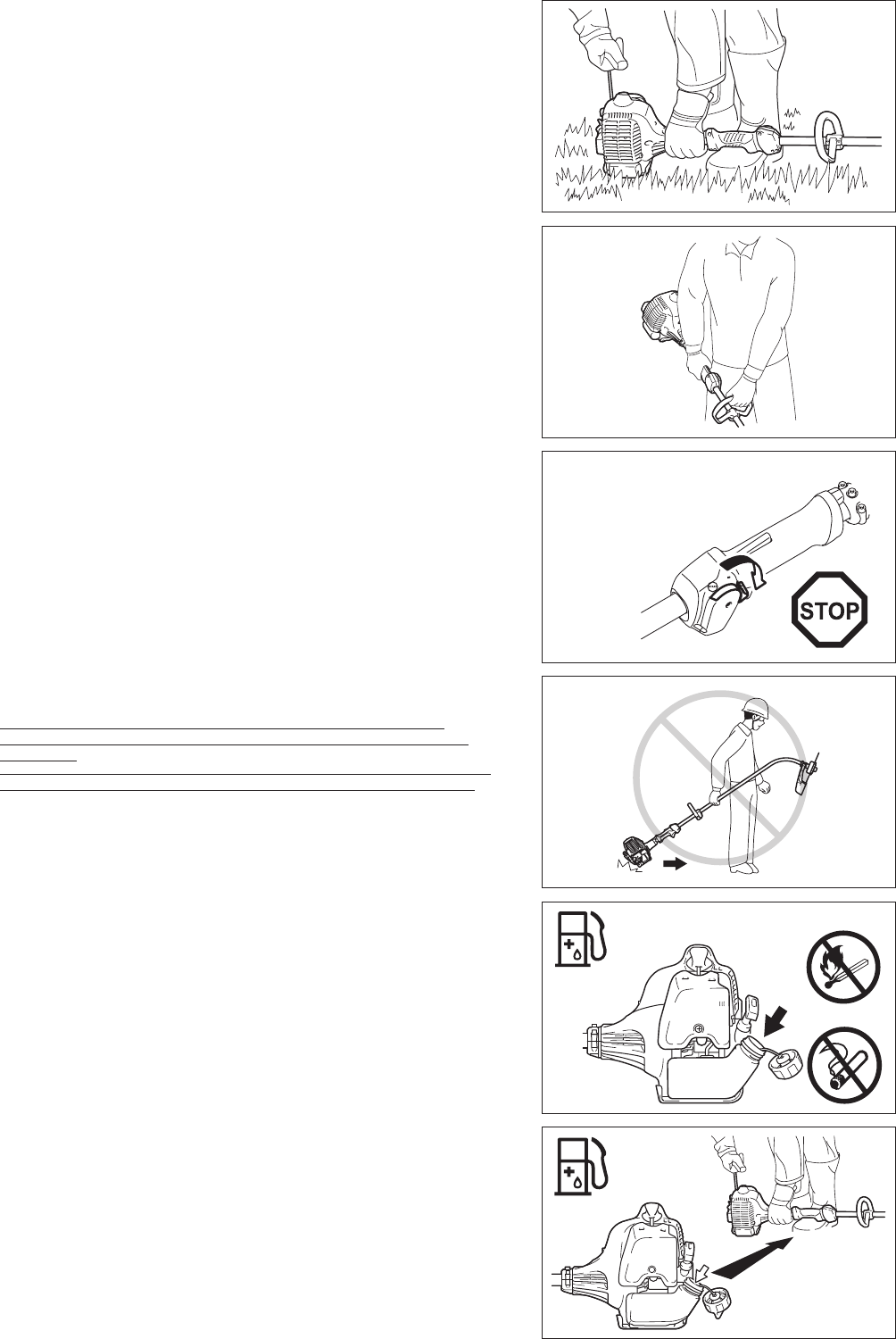 – Schakel de motor uit tijdens pauzes en wanneer u het gereedschap