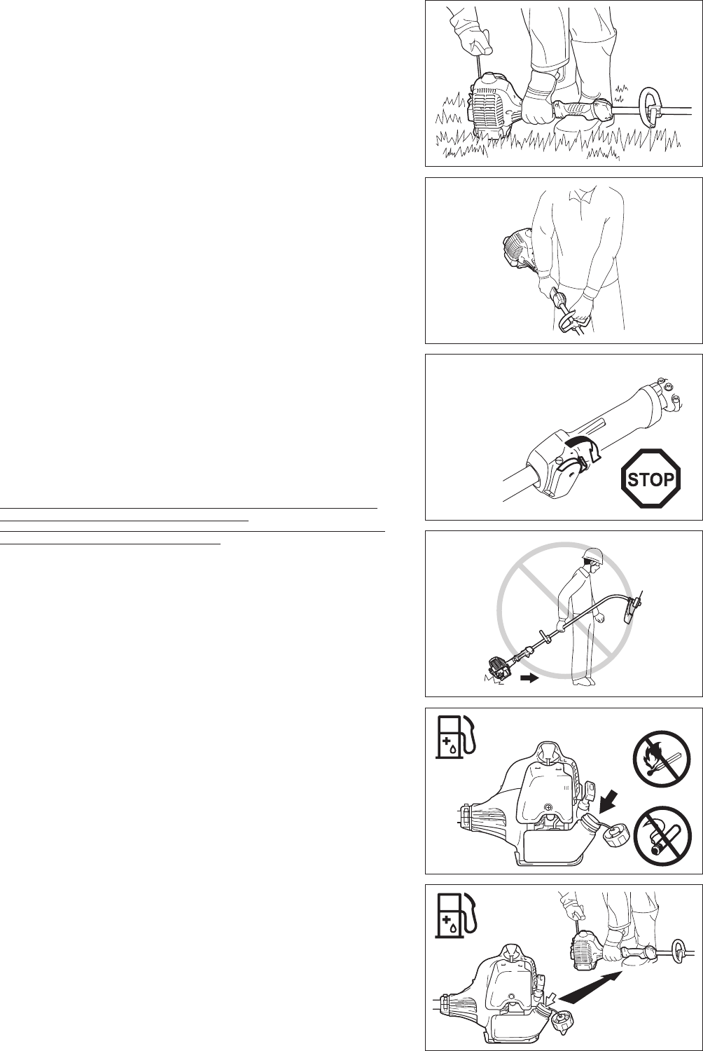 – Never put the hot Petrol String Trimmer onto dry grass or onto any