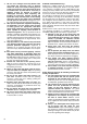 22. Tenga cuidado con las chispas que salen volando. Sujete la herramienta de forma que las chispas salgan volando en dirección contraria a usted y otras personas o materiales inflamables. 23. No deje la herramienta en marcha. Tenga en marcha la herramienta solamente cuando la tenga en la mano. 24. No toque la pieza de trabajo inmediatamente después de la operación; podría estar muy caliente y quemarle la piel. 25.