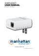INTRODUCTION Thank you for purchasing the Manhattan SimpleNet (Powerline AV500 Ethernet Adapter), Model 506663. The Starter Kit, Model 506670, features a pair of units, the minimum number required to operate the devices. ® This device allows you to create a high-speed network for your home or office by simply plugging it into any electrical outlet.
