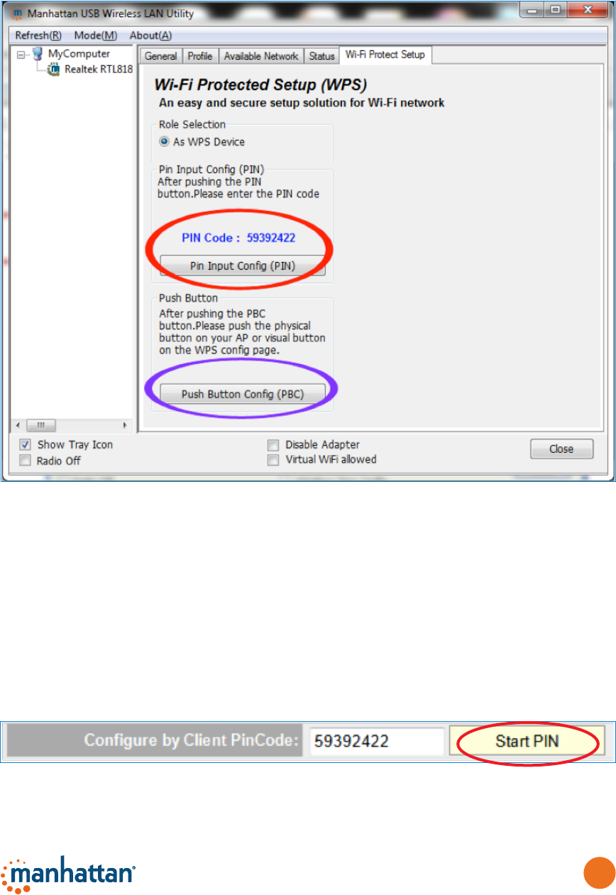 2. Find the PIN code on your Manhattan wireless utility screen — circled in red in