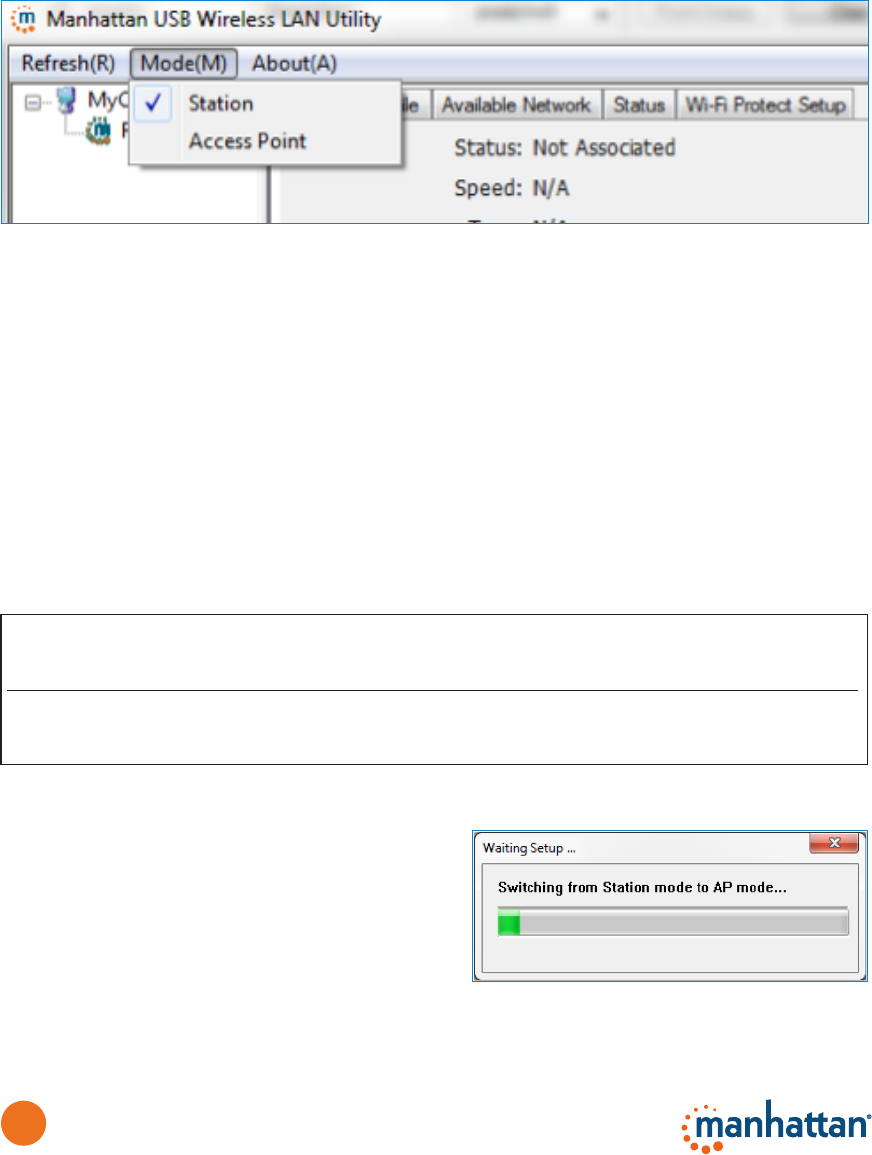 operate the Manhattan wireless adapter in Access Point mode, the adapter