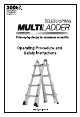 Operating Procedure and Safety Instructions A WARNING: 1. Read these instructions completely before using the ladder. 2. Failure to comply with all instructions may result in serious injury. 1 DESCRIPTION overproduction. 2 terminology. 3 2 SAFETY «counterproductive .. lll + Proper set-up and use supercargoes product. 3 PUSH KNOB LOCKING HINGE + Hinge operations (adjust angle of ladder) 6 4 SPRING LOADED “J” LOCKS + Lock operation {adjust height) .. 7 5 PROPER USE *Superimposition.