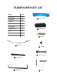 TRAMPOLINE PARTS LIST PARTS ITEM Erame cover A Junping Mat B Top Rail C Spring E Leg Extention F W-Shaped Leg G Screw H Two-in-one screw K Tool(Optional) I C A Frame Cover B Jumping Mat Top Rail K F Leg Extension G W-Shaped Leg E Spring H Screw Two-in-one screw I -1- Tools