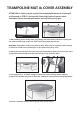 TRAMPOLINE MAT & COVER ASSEMBLY ATTENTION: 2 adults may be required to complete placement of all springs E as illustrated in STEP13. Springs will Create high levels of tension when assembled. Please use extreme caution not to pinch your fingers. E 7. With stitching portion facing down, lay jumping mat inside frame and attach a spring into one of the triangle rings on the mat. Then attach spring with ring to frame. WARNING: Trampoline is under heavy tension.
