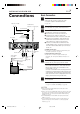 EN INSTALLING YOUR NEW VCR Connections Basic Connection 1 Check contents Make sure the package contains all of the accessories listed in “SPECIFICATIONS” (墌 pg. 87). Antenna or Cable ANTENNA IN (Antenna or cable input) Flat Feeder Matching Transformer (not supplied) AC Power Cord VHF/UHF COMPONENT VIDEO OUT Y PB/CB ANTENNA IN PR/CR S VIDEO IN(L-1) ANTENNA CABLE BOX REMOTE PAUSE/ AV COMPULINK i.