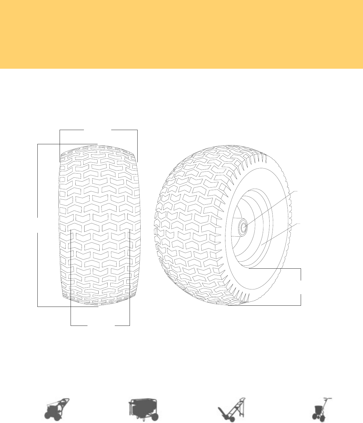 Description: Flat Free, 13x6.50-6” turf; 3/4” bearing bore; 3” hub