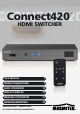 Consiglio per l’installazione: Per la migliore qualità di immagini e suono usare solo cavi HDMI High Speed® certificati. USO Commutazione automatica tra le fonti HDMI Quando è attivata una delle fonti HDMI, il Connect420 commuterà automaticamente al canale di ingresso giusto. In caso di più fonti HDMI attivate il Connect420 commuterà automaticamente alla fonte attivata per ultimo. Commento: La commutazione automatica deve essere supportata dalla fonte HDMI.