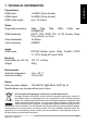 Connections HDMI input HDMI output HDMI cable length Video Supported resolutions HDMI standards Video Bandwidth Clock frequency Audio HDMI audio ENGLISH 7. TECHNICAL INFORMATION 1x HDMI (19-pin female) 2x HDMI (19-pin female) max. 15 metres 480p, 576p, 720p, 1080i, 1080p and 4k2k@24/30 HDCP, CEC, EDID, DVI, all 3D formats, Deep Color (36-bit), x.v.Color 10.2Gbps 300MHZ DTS-HD Master Audio, Dolby TrueHD, LPCM 7.1, DTS, Dolby-AC3 and 2.