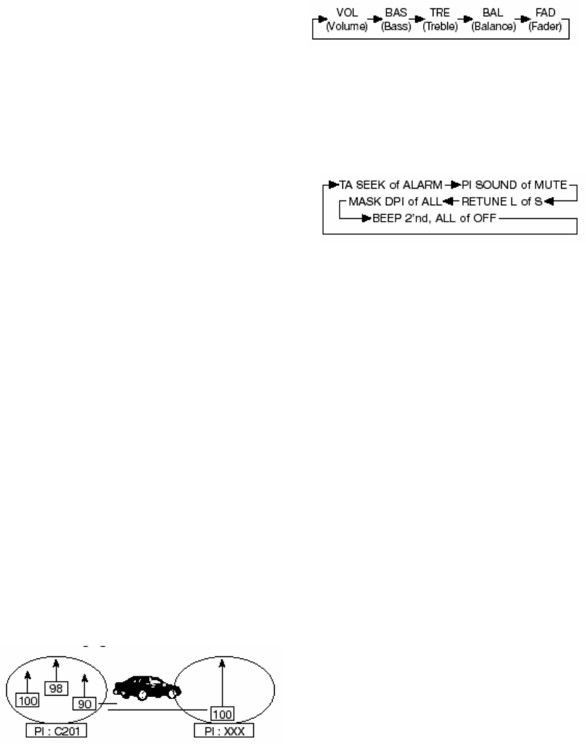 biep geluiden. Als er op een nieuw afgestemd station geen RDS signaal aanwezig is, wordt het “PI SEEK”