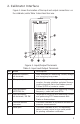 2. Calibrator Interface Figure 1 shows the location of the input and output connections on the calibrator, while Table 1 describes their use. Figure 1. Input/Output Terminals Table 1: Input and Output Terminals No. Name Description 1, 2 Measure Isolated V, mA terminals Input terminals for measuring current, voltage, and supplying loop power. 3 TC input/output Terminal for measuring, or simulating thermocouples. Accepts miniature polarized thermocouple plugs with flat in-line blades spaced 7.9 mm (0.