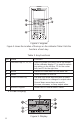 The display of the calibrator, shown in Figure 3, is divided into three main sections: the upper display, the lower display, and the menu bar. The upper display is used for measuring dc voltage, dc current with and without loop power, and pressure. The lower display can be used for both measuring and sourcing. The menu bar is used to setup both the upper and the lower display to perform the desired function. Table 3 explains the different parts of the display: Table 3: Display Functions No.