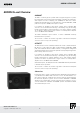 ADORN USER GUIDE Technical Specifications A40/A40T TYPE Ultra-compact passive two-way system, front ported bass reflex FREQUENCY RESPONSE (1) 98Hz-17kHz ± 3dB -10dB @ 70Hz DRIVERS LF: 4” /1” high-temp voice coil, coated paper cone, rubber surround, ferrite motor, pressed steel chassis HF: 0.