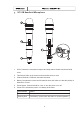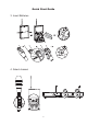 UF-31B Handheld Microphone 1. Grille: Protects the microphone capsule and helps reduce breath sounds and wind noise. 2. Talk Switch: Slide up the switch to talk and slide down to mute. 3. Channel Selector: 8 different selectable channels. 4. Battery Compartment: Insert two AA batteries here and make sure that the polarity of batteries is correct. 5. Power Button: Press and hold for 2 sec. to turn the power on or off. 6. Power LED: Indicate the power / low battery level status.