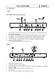 Receiver Front : RS-51B: Diversity Receiver 3 6 1. 2. 3. 4. 5. 6. 7. 1 2 4 5 7 6 Power Button: Press and hold for 2 sec. to turn the power on. Press and hold for 2 sec. to turn the power off. AF Indicator: The indicator glows to indicate that audio signal has been received. RF Indicator: The indicator glows to indicate that RF signal has been received. LED Display: The 7 segment LED display shows the selected preset channel. Channel Selector: Press and hold for 1 sec.