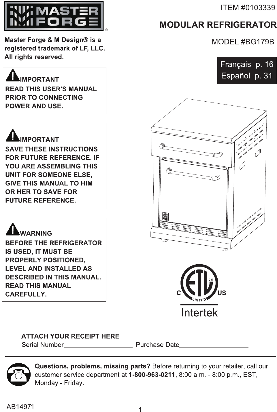 SAFETY INFORMATION To reduce the electrical shock or injury when using the refrigerator, follow basic precautions including the following: Remove all packaging before using this unit. • Plug into a grounded 3-prong GFI outlet. Do not remove grounding prong, do not use an adaptor, and do not use an extension cord. • It is recommended the refrigerator be plugged into it's own circuit. Use receptacles that cannot be turned off by a switch or pull chain. • Never clean refrigerator parts with flammable fluids.