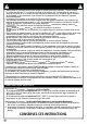 • Ce ma nuel contient des inform a t ions qui sont necess a ires pour une utilis a t ion sure et a ppropriee de cet a ppa reil. • Lisez et suivez la tot a lite des a ve rt issements et des instructions fournis a v a nt d' a ssembler et d'utiliser l' a pp a reil. • Conservez ce m a nuel pour reference ulterieure. A .. L'omission de vous conformer a ces instructions pourrait entrainer un incendie, une A explosion ou un risque de brOlure, qui pourrait causer des dommages materiels, des . .