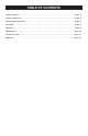 TABLE OF CONTENTS Safety Symbols. . . . . . . . . . . . . . . . . . . . . . . . . . . . . . . . . . . . . . . . . . . . . . . . . . . . . . . . . . Page 2 Safety Instructions. . . . . . . . . . . . . . . . . . . . . . . . . . . . . . . . . . . . . . . . . . . . . . . . . . . . . . . Page 4 Overview/Specifications . . . . . . . . . . . . . . . . . . . . . . . . . . . . . . . . . . . . . . . . . . . . . . . . . . Page 8 Assembly . . . . . . . . . . . . . . . . . . . . . . . . . . . . . . . . . . . . . . . . .