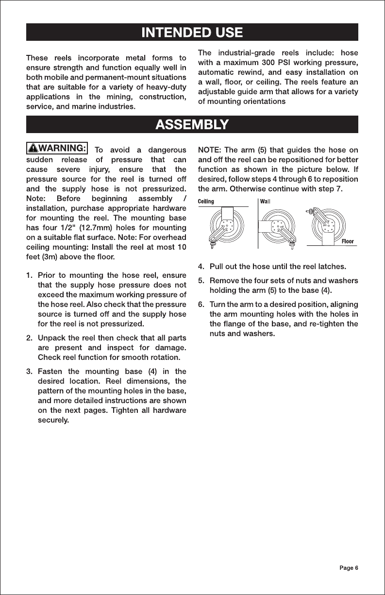 3/8" x 50' Heavy Duty Retractable Rubber Air Hose Reel