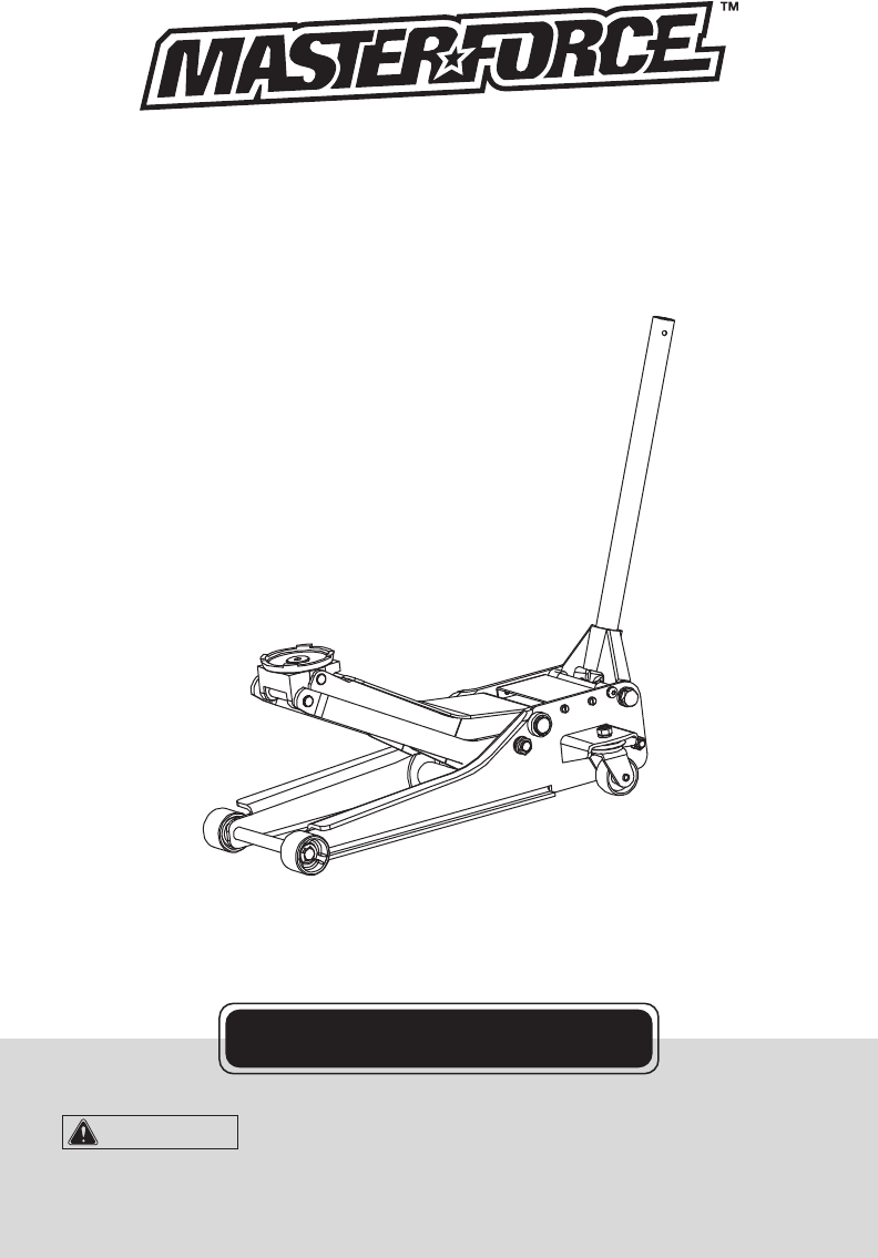 - 3 Ton Low Profile Floor Jack WARRANTY 90-DAY MONEY BACK GUARANTEE This MASTERFORCE™ brand prouduct carries our 90-Day Money Back Guarantee. If you are not completely satisfied with your MASTERFORCE™ brand prouduct for any reason within ninety (90) days from the date of purchase, return the tool with your original receipt to any MENARDS® retail store, and we will provide you a refund - no questions asked.