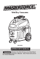 SAFETY INSTRUCTIONS & WARNINGS IMPORTANT SAFETY INSTRUCTIONS FOR FUTURE REFERENCE Read and understand this operator's manual and all labels on the Wet/Dry Vacuum cleaner before operating. Safety is a combination of common sense, staying alert, and knowing how your vacuum works. Use this Wet/Dry Vac only as described in this manual. To reduce the risk of personal injury or damage to your Wet/ Dry Vac, use only MasterforceTM recommended accessories. Household Type SAVE THIS MANUAL FOR FUTURE REFERENCE.