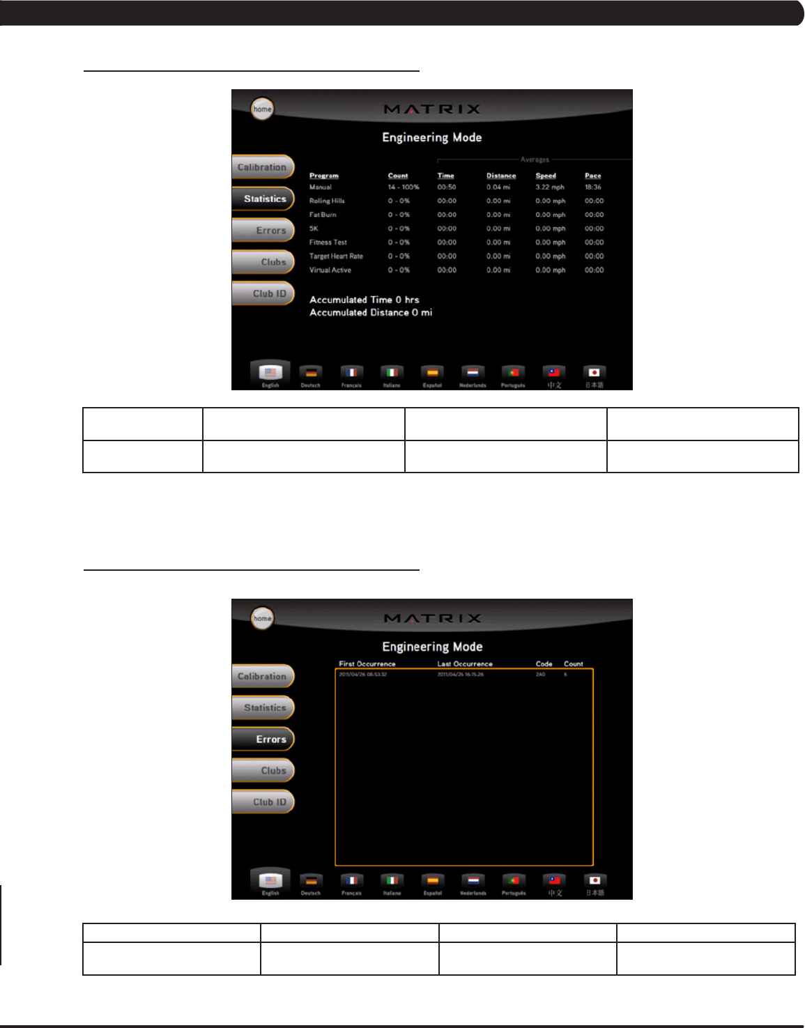 Statistics This option displays workout