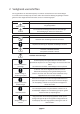 7. 7.1 Bediening warmtepomp d.m.v het touch screen display Functies en verklaringen van de touchscreen display Display gegevens gebied. Bedienings symbolen Verklaring van de bedieningssymbolen Nr symbool Naam Functie 1 Aan/Uit Voor het aan en uit zetten van de warmtepomp 2 Modus Voor het instellen van de verschillende bedrijfsmodi of voor het bevestigen van de settings.