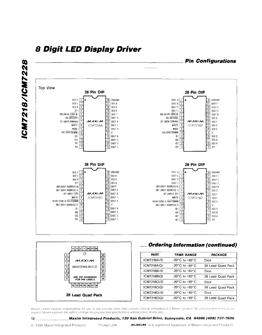 PMIC - display driver LED 7 segments 8 numbers Parallel 250 µA PDIP 28
