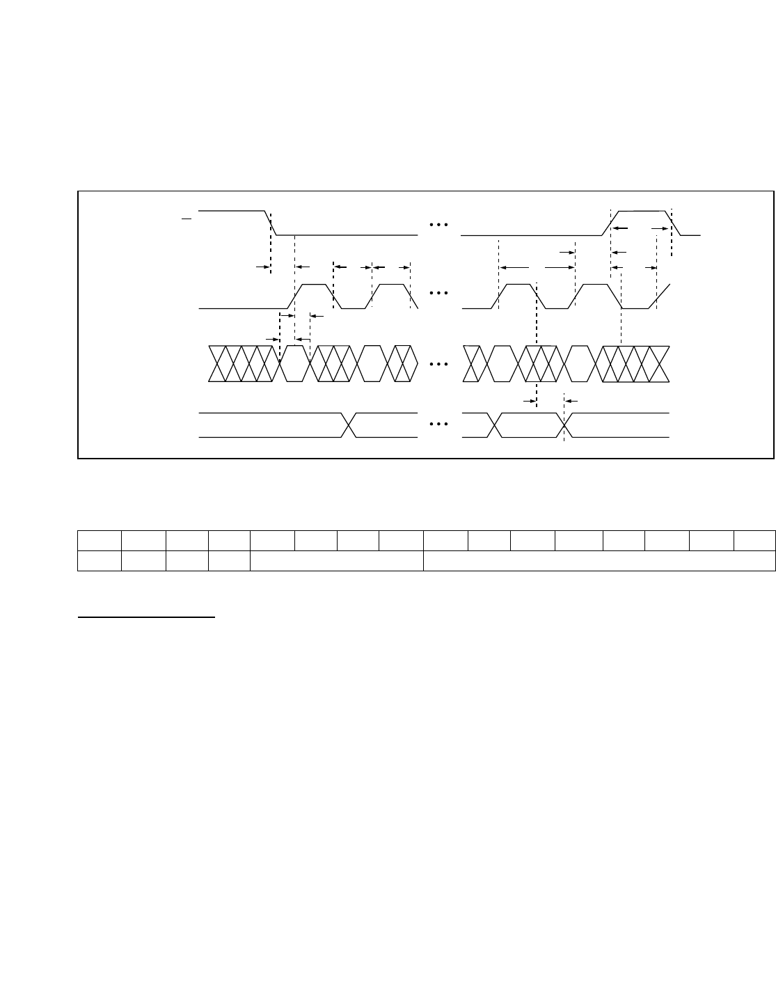 edge of CLK. Data bits are labeled D0–D15 (Table 1).