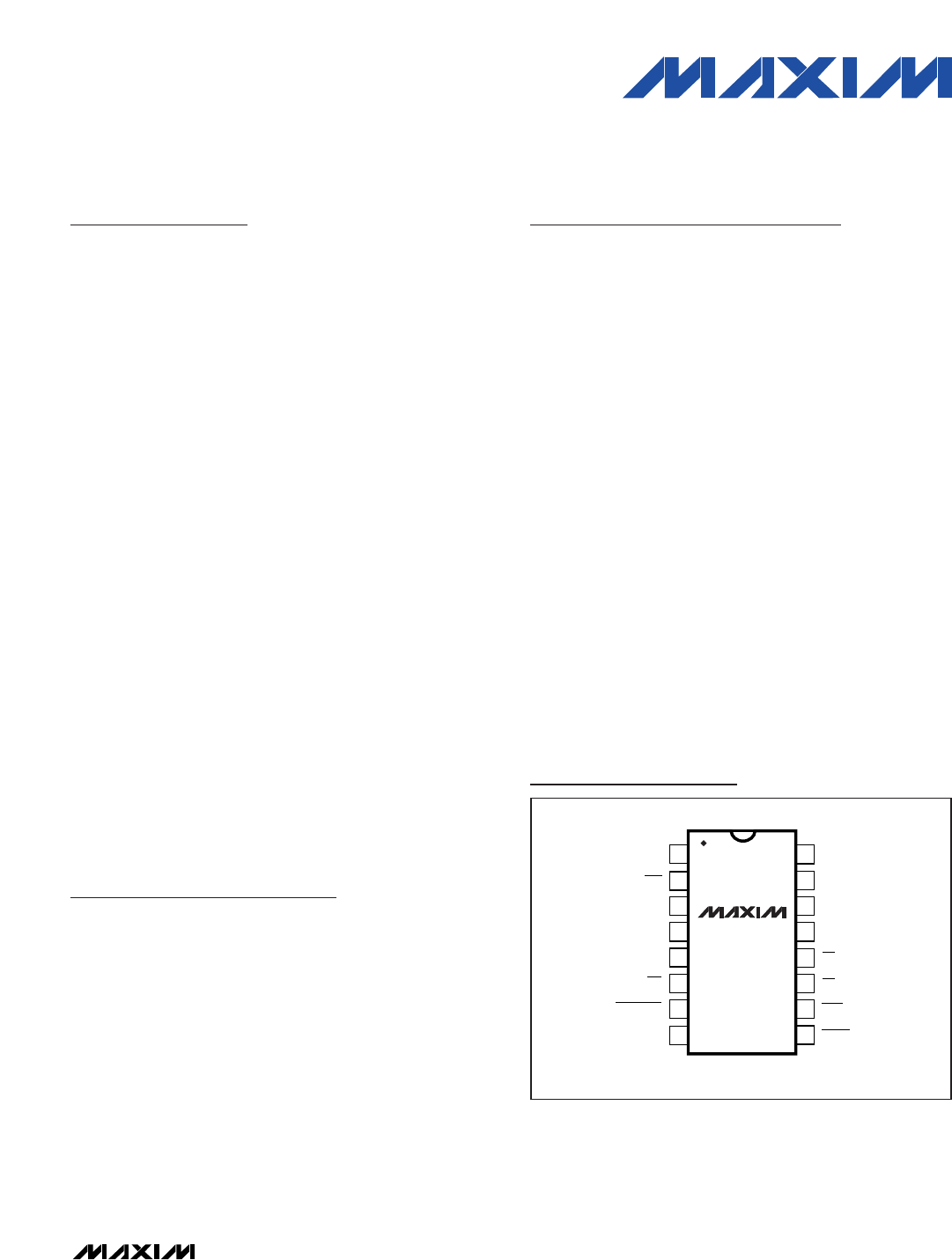 For pricing, delivery, and ordering information, please contact Maxim/Dallas Direct! at